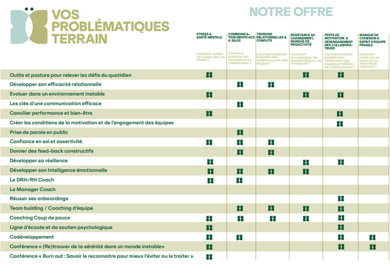 Séminaires, parcours, formations, ateliers, coaching, codéveloppement… C’est à ce stade de chrysalide que l’on passe véritablement à la pratique. Une phase de transformation menée en concertation et ajustée en permanence pour répondre aux évolutions de vos besoins.